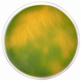 TCBS Agar is a selective medium widely used to isolate and cultivate practically all bacteria of the genus Vibrio, including V. cholerae and V. alginolyticus, pathogenic to humans causing cholera, choleral diarrhea or food poisoning from contaminated foods and from stool specimens. The last 2